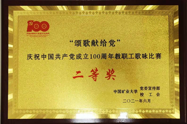 为展示矿大职工良好风貌、激发矿大职工干事热情、热赞百年大党辉煌,6月20日晚,“颂歌献给党”中国矿业大学庆祝中国共产党成立100周年教职工歌咏比赛在明德礼堂隆重举行。总务部代表队在28支参赛队伍中表现出色,荣获了全校二等奖的佳绩。