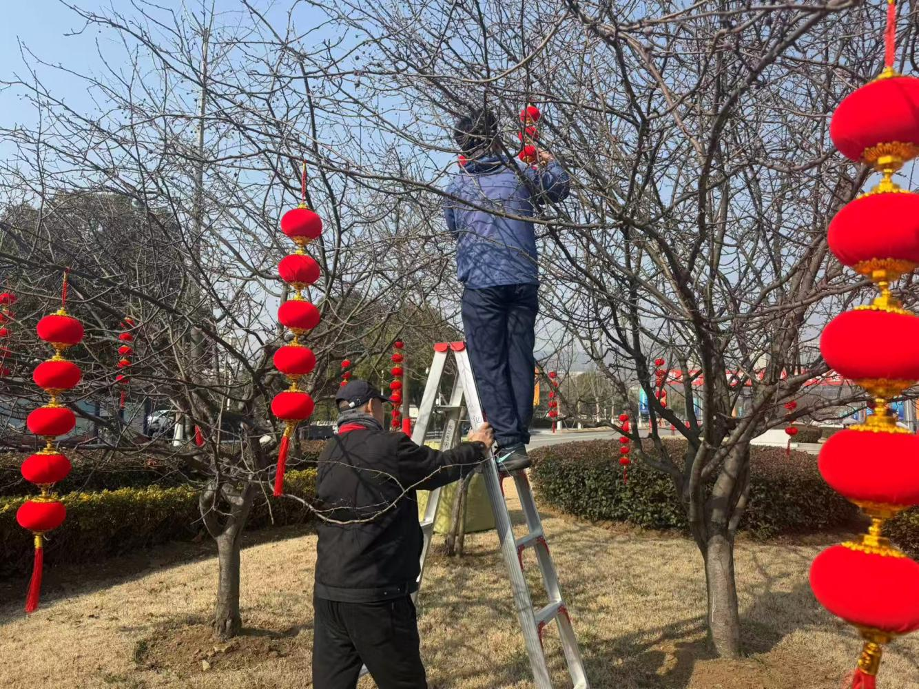 为了让校园满溢年味儿,总务部还在两校区挂起了近2000盏红灯笼,南湖东门的银杏树也系上了吉祥红绳,一踏入校园,浓浓新春气息便扑面而来。