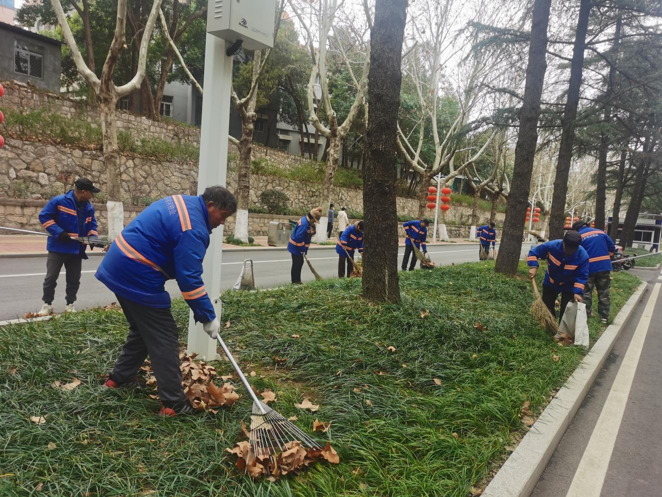 校园“环境卫士”们也始终忙碌,对420余处配电间、40部电梯逐一细致检修,开展10余次校园环境大扫除,清理各类垃圾50余袋、废弃车辆100余辆,人工湖的漂浮物、楼道的堆积杂物也被清理得干干净净。工作人员还为主干道1100余棵树木穿上了“过冬棉衣”,确保校园绿植安然越冬。