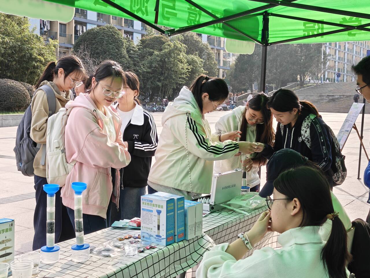 活动现场氛围热烈,师生们通过观看节水主题展板,直观了解水资源现状与校园节水举措。现场同步开展的“水质检测大挑战”“污水净化小达人”“水趣科学实验室”等互动体验活动,也吸引了众多同学踊跃参与,大家在动手实践中解锁节水知识、感受水科学的魅力;“绘水创意秀”“水润拓印行”“节水植绿超有范”等趣味环节,更让同学们以创意表达的方式传递爱水护水理念,让节水宣传变得生动有趣、入脑入心。
