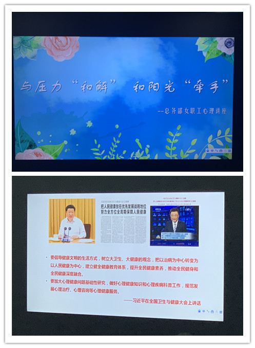 12月20日,经中国矿业大学总务部工会牵头,于总务部大会议室举行“与压力和解,和阳光牵手”为主题的女职工心理咨询讲座。