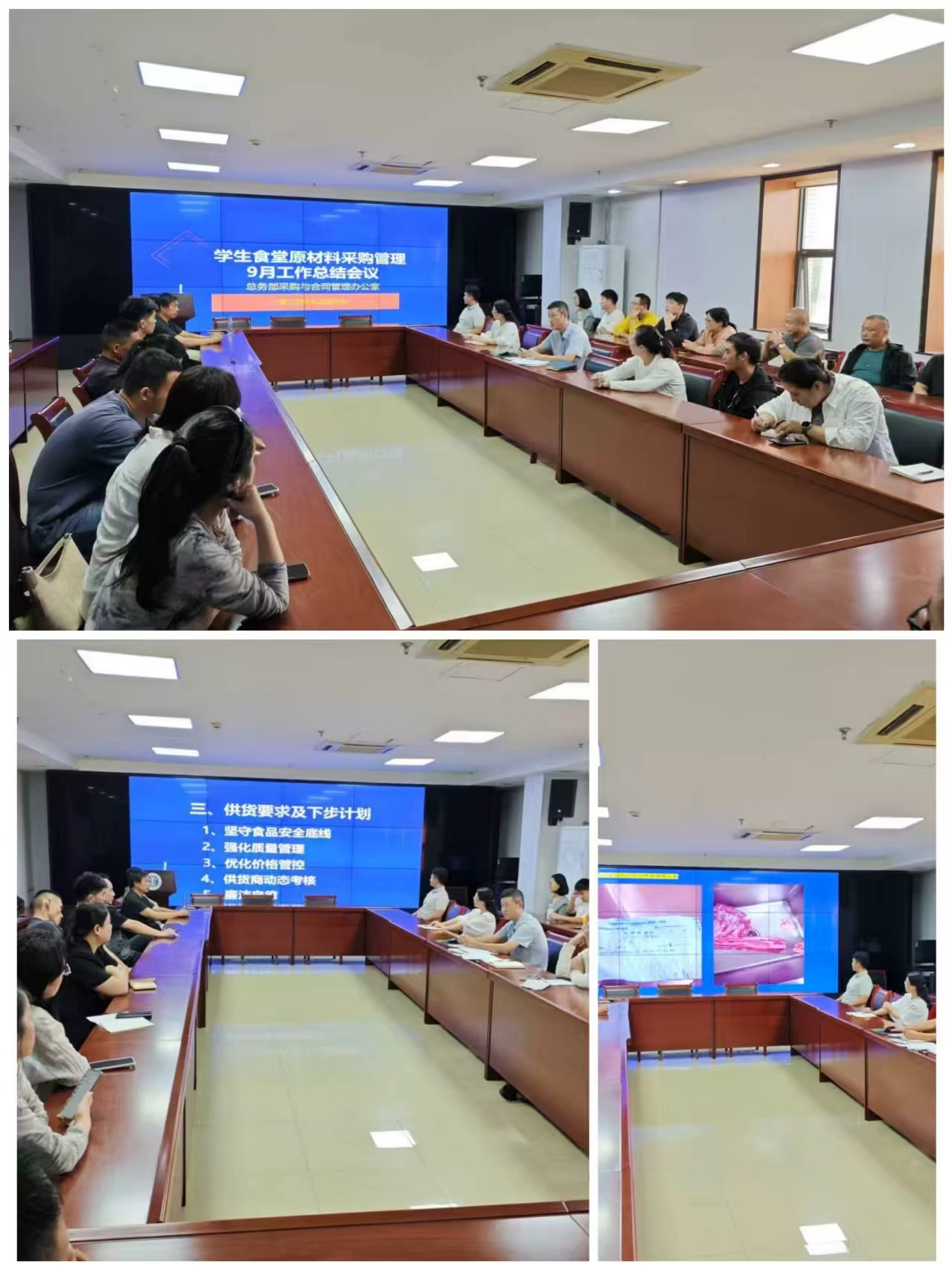 三是下步工作动态。针对存在问题和近期实际情况,从坚守食品安全底线、强化质量管理、优化价格管控、动态考核供货商、廉洁自律五个方面发力。