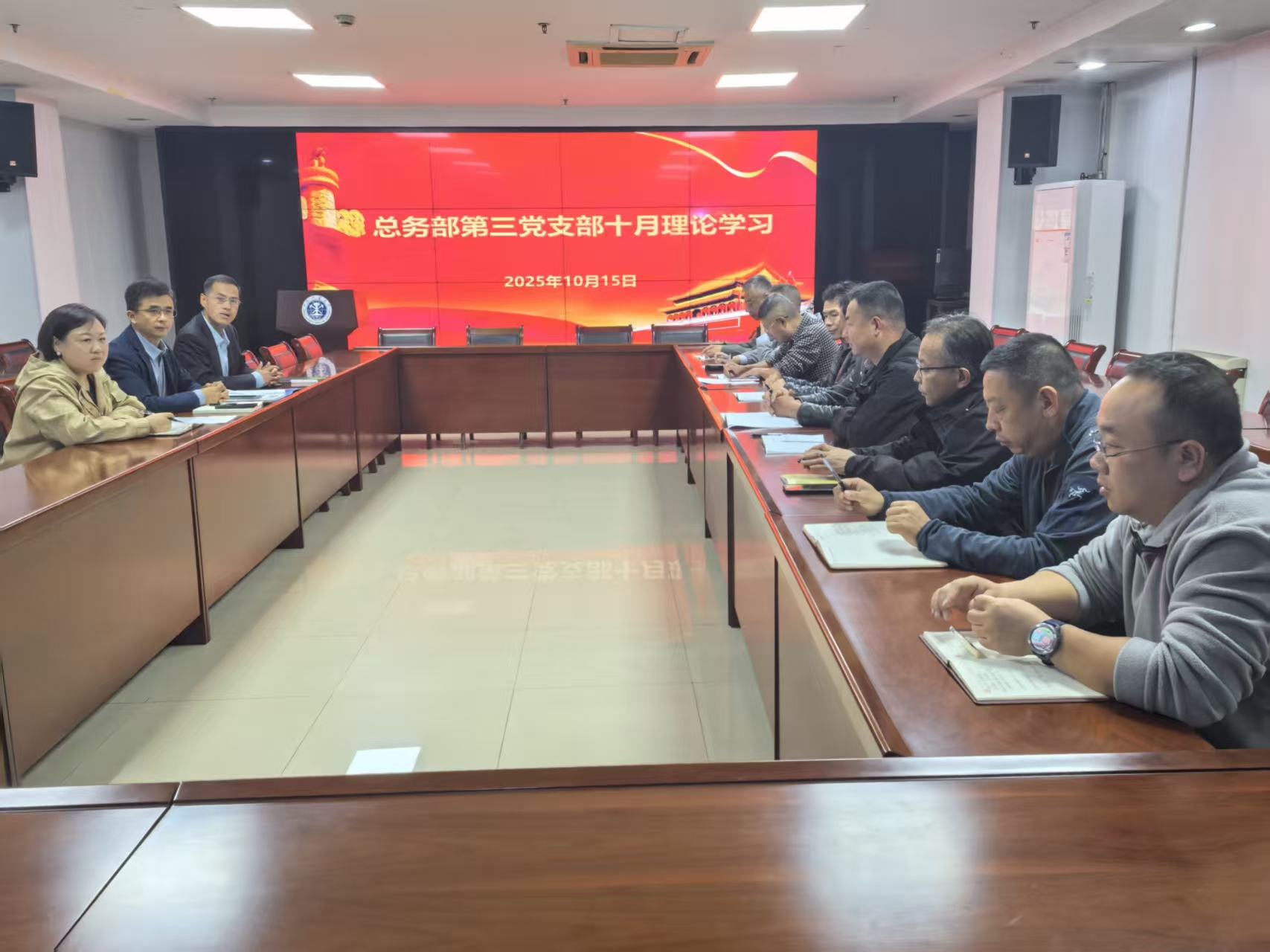 10月15日,总务部第三党支部在403会议室开展了十月理论学习活动。第三党支部全体党员参加,会议由党支部书记初媛媛主持。