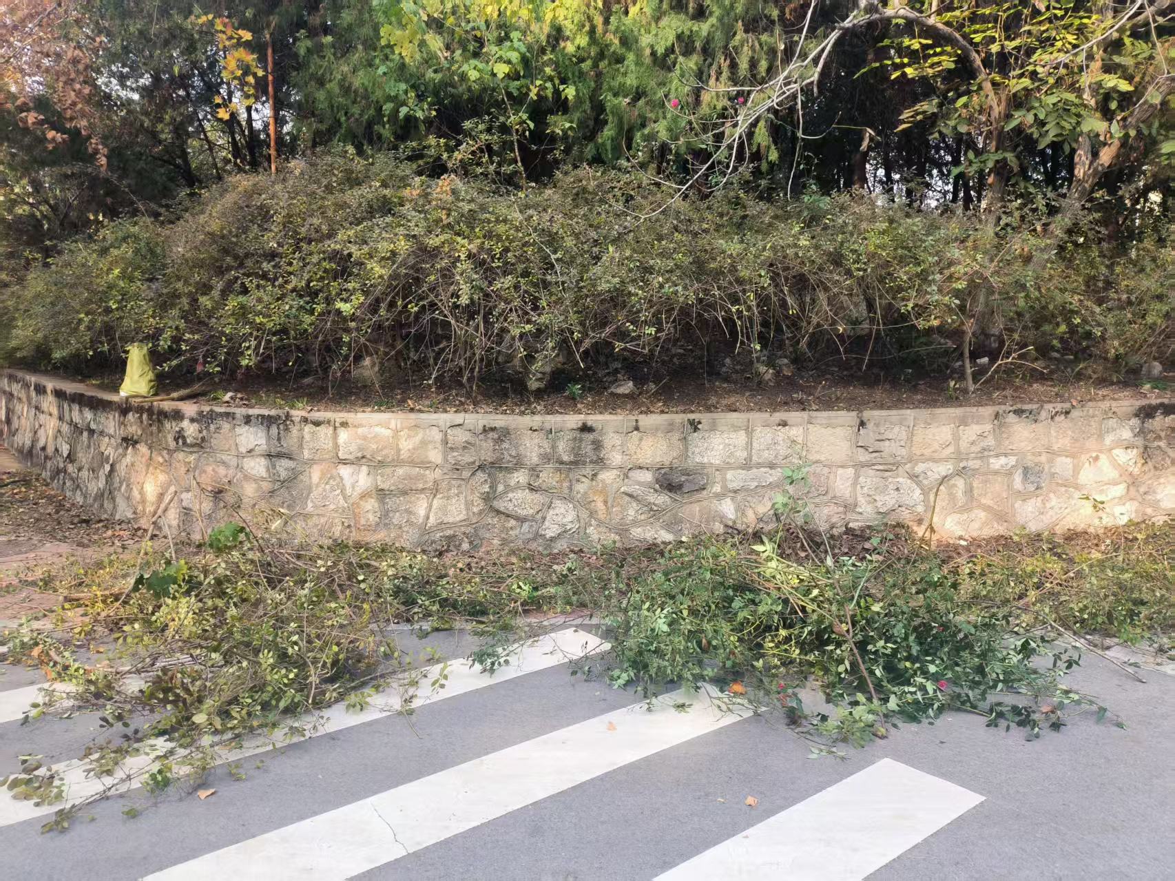 随着落叶季的到来,绿化带内落叶堆积增加了清理工作量。五委办安排专人全天候值守清理现场,全程协调清扫进度、堆积垃圾外运事宜,以细致沟通和辛勤付出保障现场安全秩序。在此基础上,五委办优化非生活垃圾外运流程,将以往集中堆放统一外运,改为堆积满一车清运一车,不仅从源头上消除长期集中堆放存在的安全隐患,还通过精准调配运输资源,有效节省经费开支。经全面清理整治,文昌校区呈现出整洁清爽的崭新面貌。