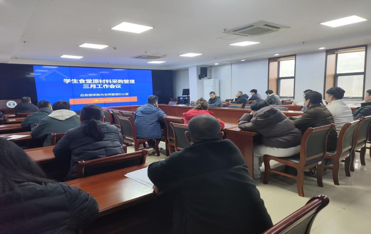 2026年3月20日下午,总务部采购与合同管理办公室召开新学期学生食堂原材料供应商管理工作会议,学生食堂原材料供应商、采购与合同管理办公室共计40余人参加会议。采购办副主任柴建主持会议。
